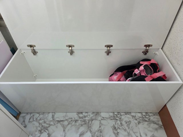 리모델링하면서 전실에 신발장을 놓고 창 밑에 벤치형 수나박스를 놓으니 수납공간도 도 생기고 롤러 가방 부피가 있는데 안보이게 수납할 수 있어서 너무 좋네요^^ 전실 공간을 더 효율적으로 사용하게 되서 좋아요. 닫을때도 쾅 소리 앉나고 좋아요^^