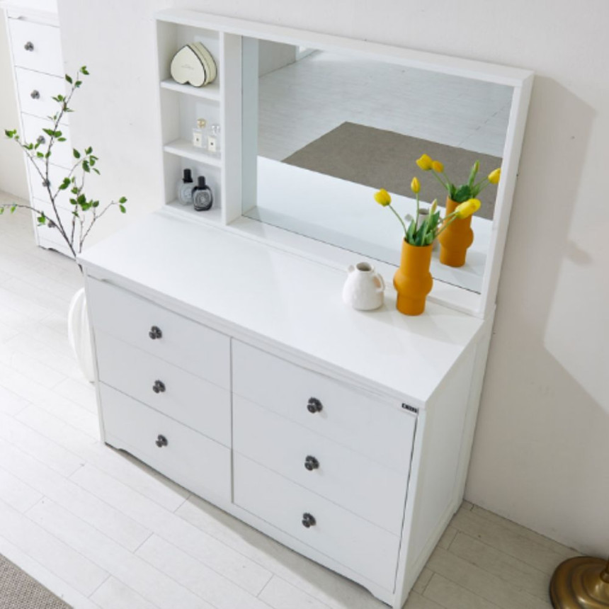힐 안방 와이드 낮은 3단서랍장 1200x510x805mm, 3단, 화이트-거울미포함