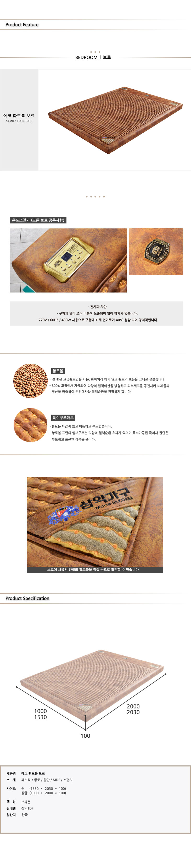 삼익가구 황토 엠보보료 S/Q